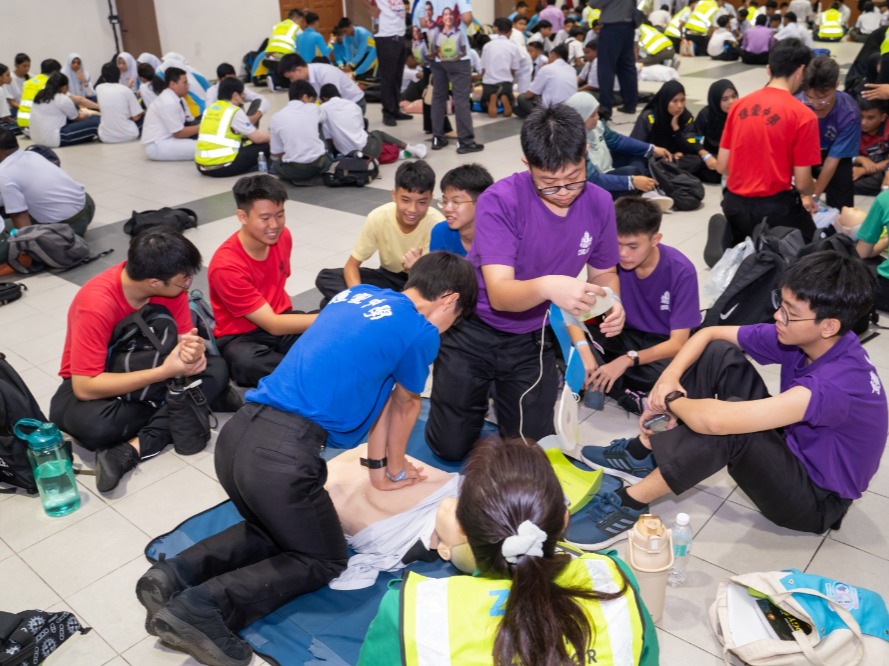 Pulau Pinang made history when 2,292 students from 27 secondary schools in the Timur Laut district participated in simultaneous CPR and Automated External Defibrillator (AED) training at Kompleks Masyarakat Penyayang. The effort earned recognition from the Malaysia Book of Records for the Largest Student Participation in a CPR & AED Training Program.